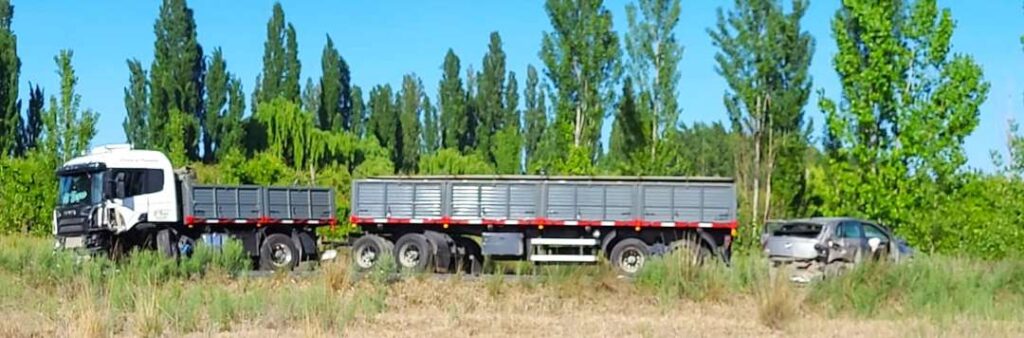 Según los primeros informes, el Gol se dirigía desde Cipolletti hacia Cinco Saltos cuando invadió el carril contrario e impactó primero contra el camión y luego contra la Hilux, en una colisión semifrontal que dejó importantes daños materiales.