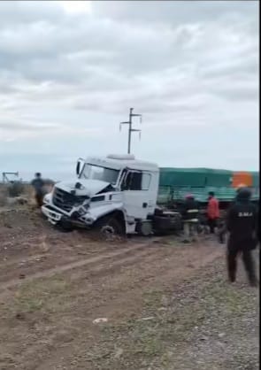 dos camiones que transportaban arena hacia vaca muerta chocaron este jueves por la tarde, en el km 120, cerca de catriel.