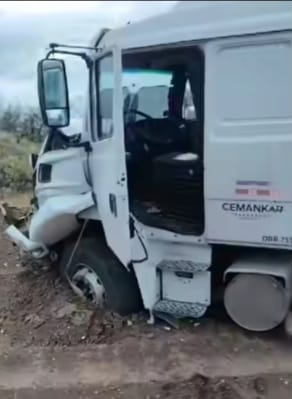 el otro camión, que venía detrás, no logró detenerse a tiempo y lo impactó con fuerza.