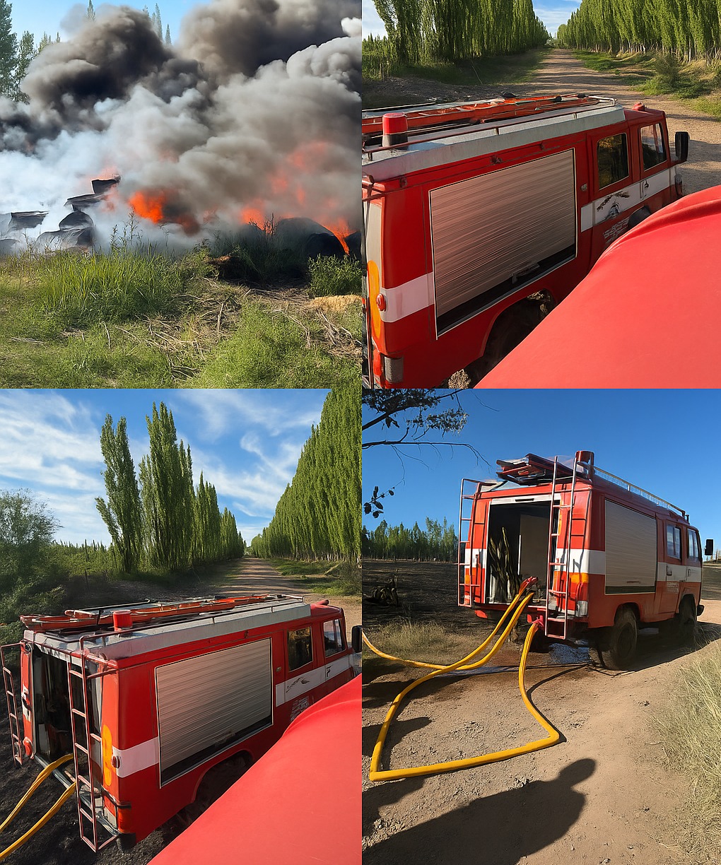 Las llamas no solo afectaron los tambores, sino que también se extendieron hacia una parte de la chacra, provocando daños en el sector rural y una intensa columna de humo visible desde distintos puntos de la zona.