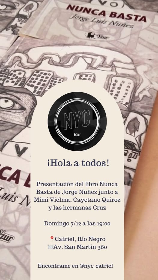 La ciudad de Catriel recibirá este domingo 7 de diciembre una propuesta cultural imperdible: la presentación de “Nunca Basta”, el nuevo libro del psicólogo, docente y escritor Jorge Luis Núñez, quien compartirá con el público su primera obra poética presentada en la localidad. Se trata de su tercera publicación, un trabajo que reúne textos íntimos, sensibles y profundamente humanos.